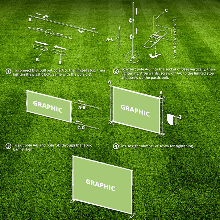 Full Color, Dye-Sublimated Print with Collapsible Frame and Carry Bag.Backdrop is constructed with pole pockets.